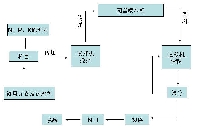 生產復混粒肥,除造粒主機外,還需其他一些輔助設備,如攪拌機、斗提機、圓盤加料機、